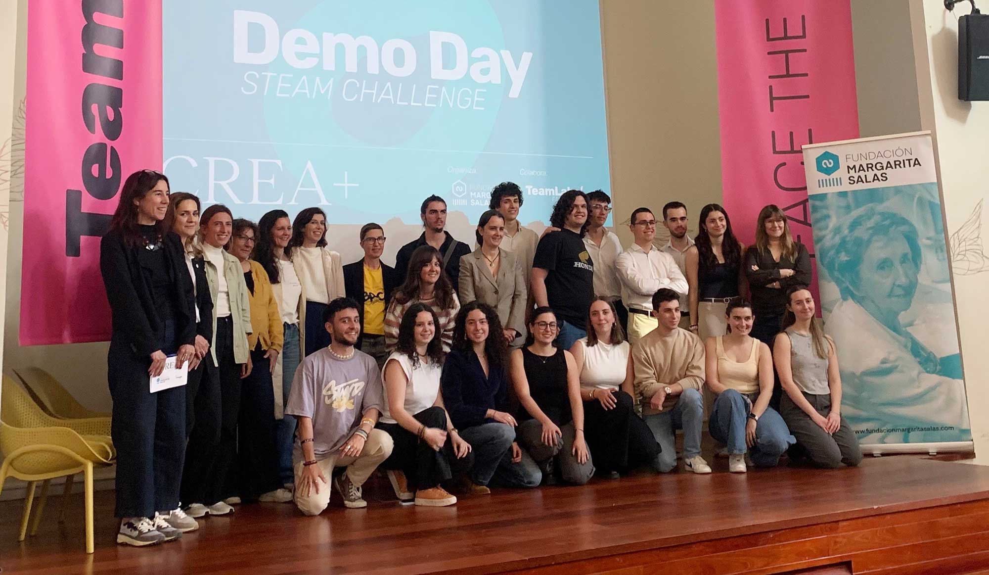 La Fundación Margarita Salas y TeamLabs/ hemos celebrado, el 16 de abril, el Demo Day del programa CREA+, el laboratorio de mentoría y emprendimiento STEM que impulsa el talento joven a través de retos reales de innovación y que arrancó el pasado mes de enero. El evento ha puesto el broche final a tres meses de trabajo en los que estudiantes universitarios y de Formación Profesional (FP) de disciplinas científicas y tecnológicas han desarrollado soluciones al desafío común que se les ha planteado: cómo avanzar hacia un modelo más sostenible en la gestión del residuo textil.
